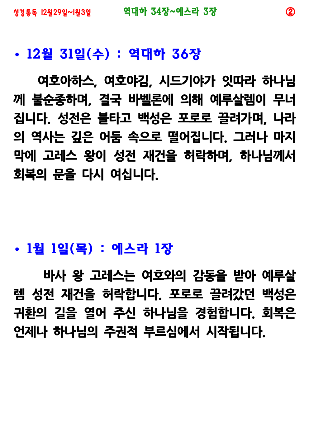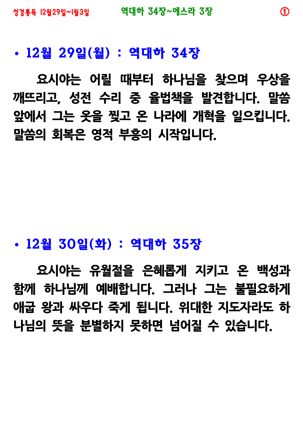 12월 4주(12월 29일~1월 3일) 성경통독