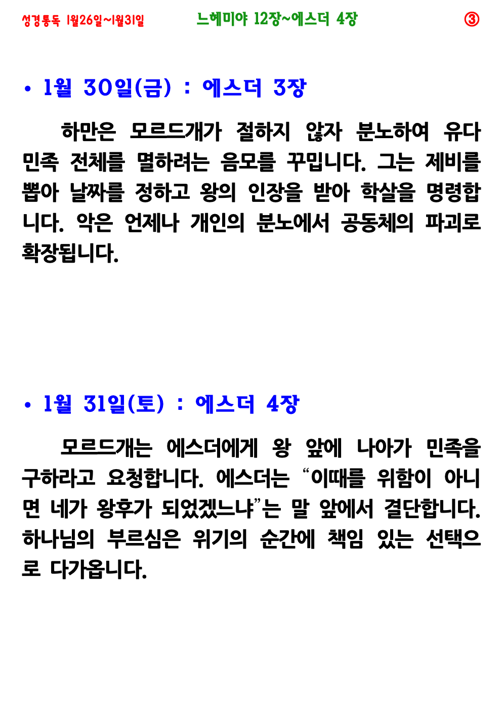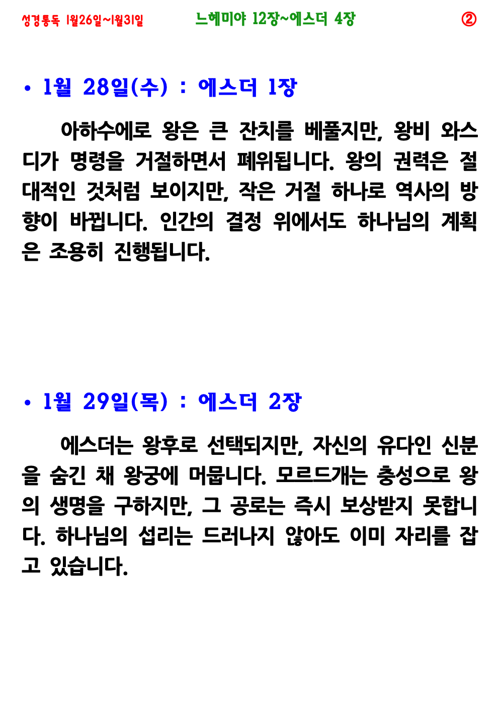 1월 4주(1월 26일~1월 31일) 성경통독