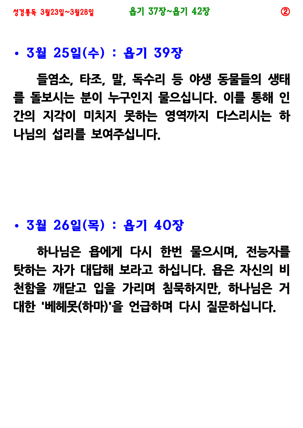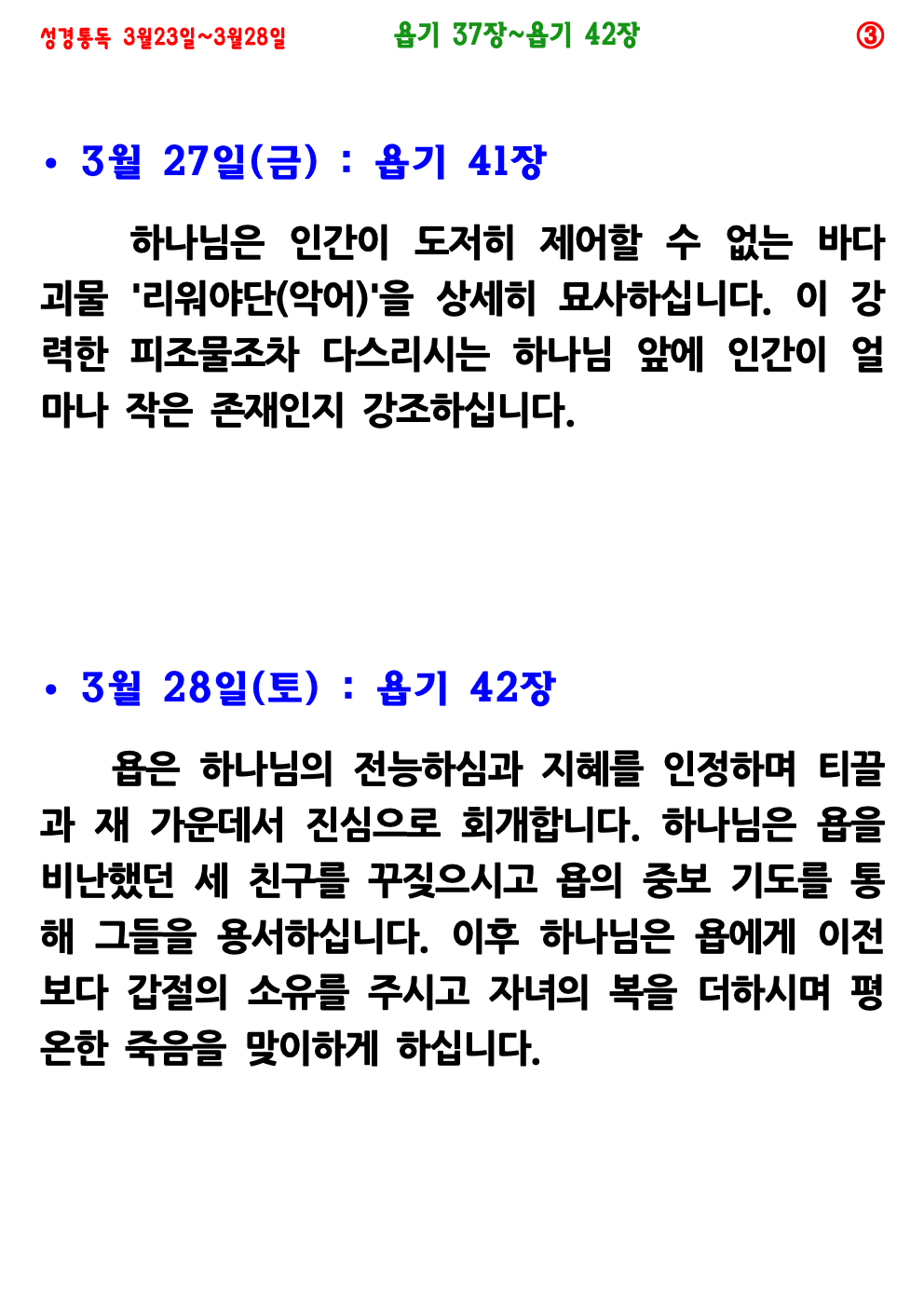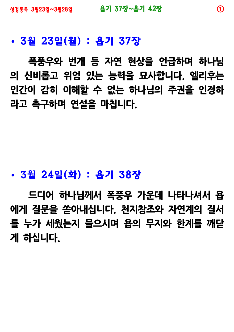 3월 4주(3월 23일~3월 28일) 성경통독