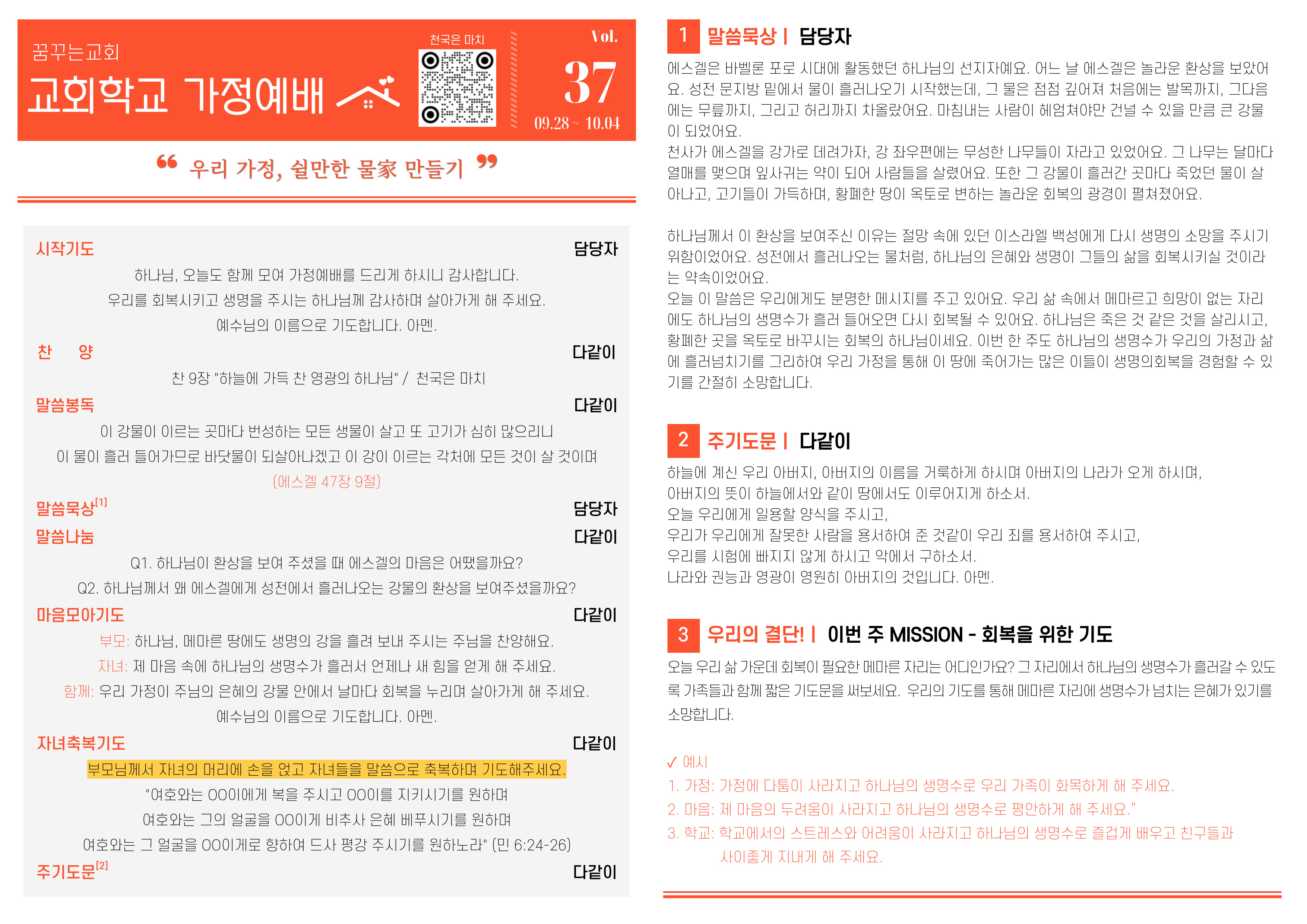 9월 4주(9월 28일~10월 4일) 가정예배 순서지 [교육부]