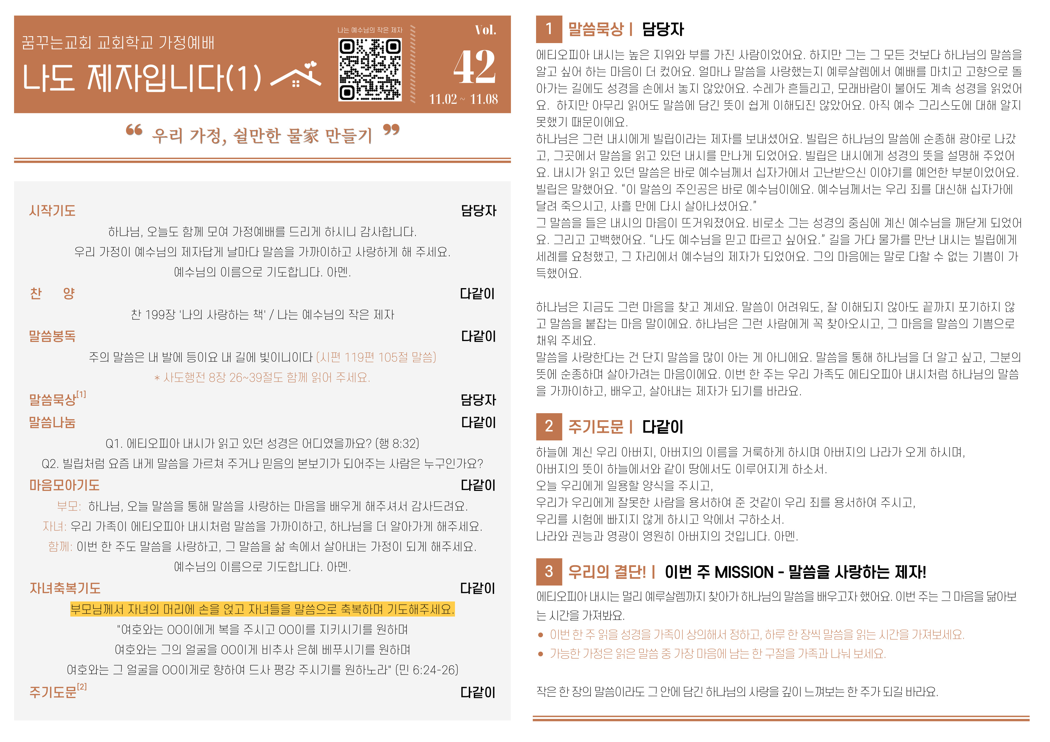 11월 1주(11월 2일~11월 8일) 가정예배 순서지 : 나도제자입니다1 [교육부]