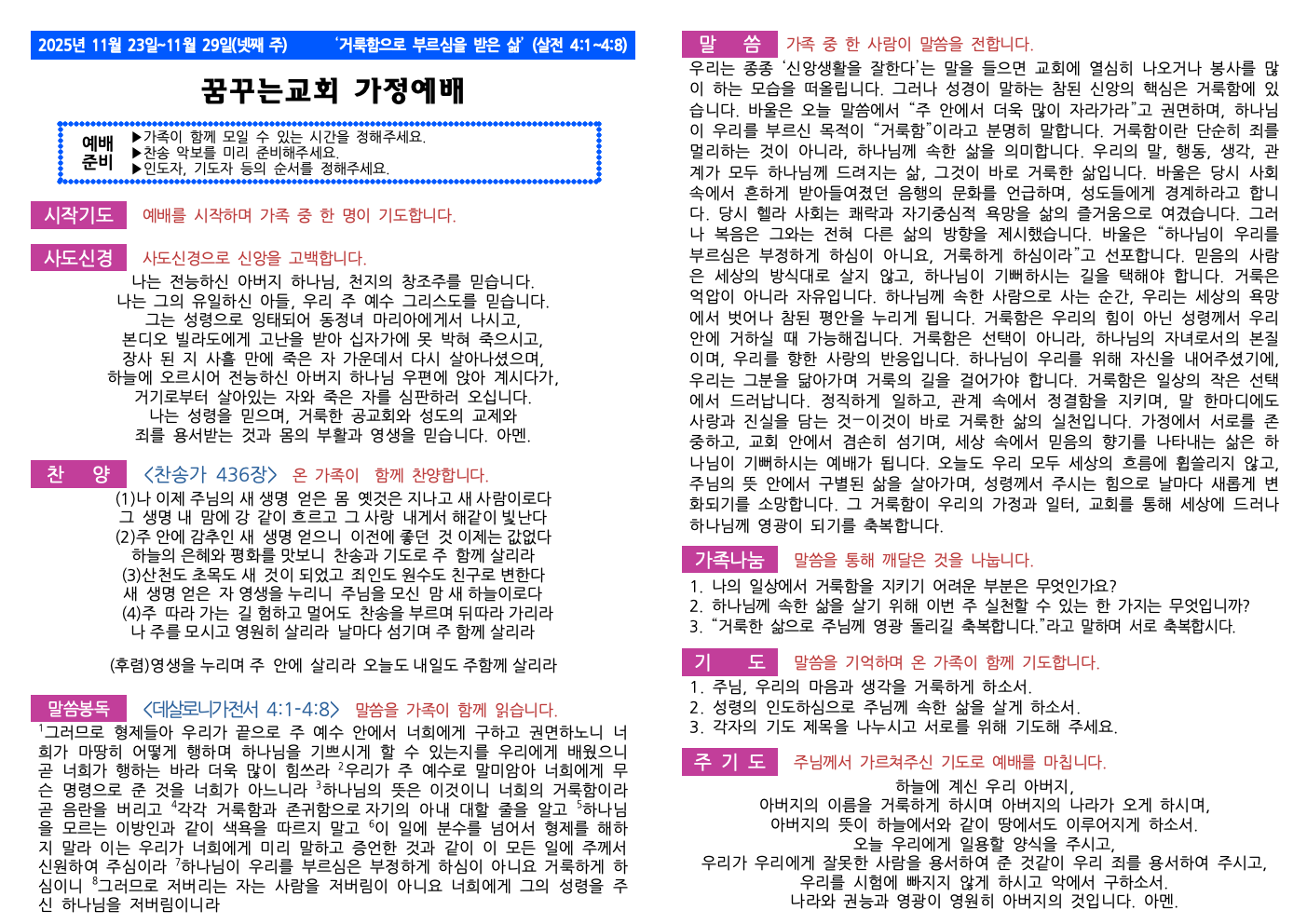 11월 4주(11월 23일~11월 29일) 가정예배 순서지