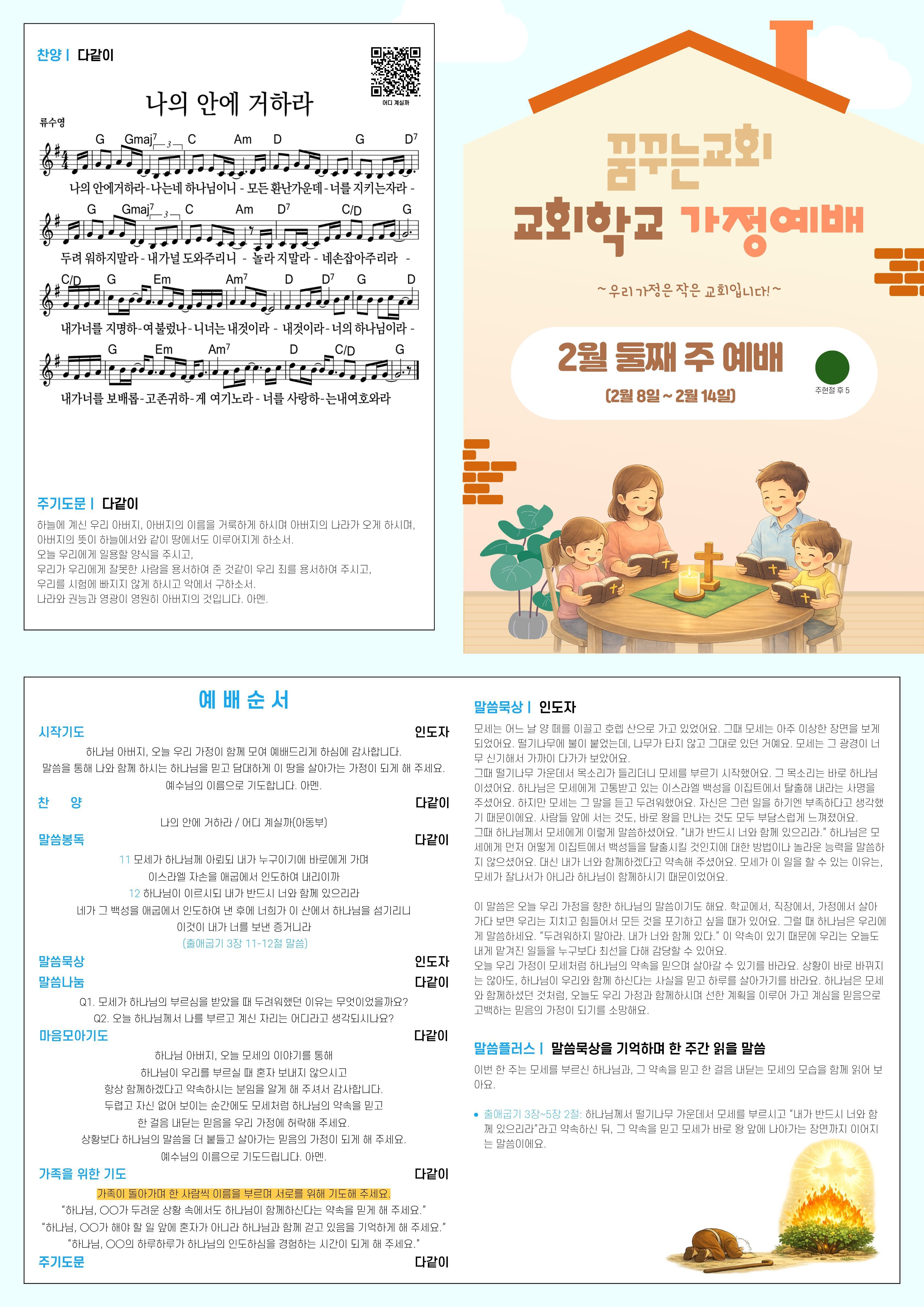 2월 2주(2월 8일~2월 14일) 가정예배 순서지[교육부]